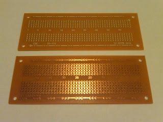 Prototyping breadboard with 45 rows of connections for dual-inline-package parts. For soldering together small circuits, these boards aren't bad. (Electronics Goldmine has these boards for $2.)